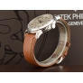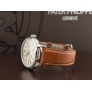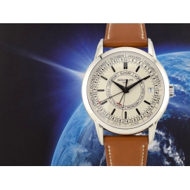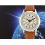 Cassa in acciaio, fondo in cristallo di zaffiro, diametro 40 mm, spessore 10,79 mm, un elegante quadrante opalino argenté, indici applicati in oro brunito. Movimento meccanico a carica automatica. Calibro 26-330 S C J SE. Giorno e numero settimana a lancetta, data a finestrella, secondi al centro. Bracciale pelle di vitello, cucito a mano, bruno chiaro. Fibbia ad ardiglione.