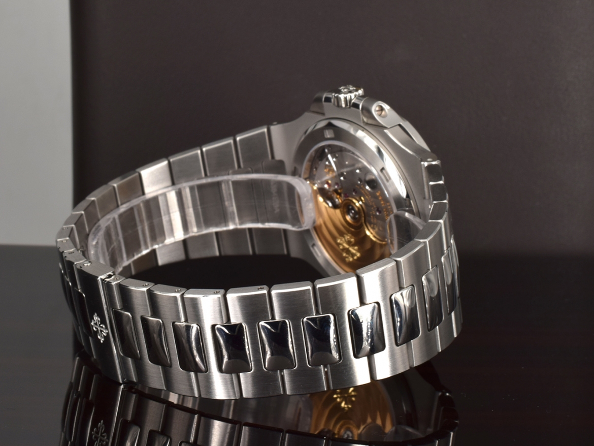 Patek Philippe Nautilus 5711/1A-010 quadrante Blu, cassa in acciaio 40mm impermeabile fino a 120 metri di profondità, l'orologio ospita il calibro 26-330 S C a carica automatica, presente dal 2019 nel modello 5711 e visibile attraverso il vetro zaffiro sul fondello: è derivato dal calibro 324 S C e vanta diverse innovazioni e ottimizzazioni tecniche, riguardanti in particolare il sistema di carica, differenziandosi anche per la funzione “stop secondi” per una messa all’ora al secondo.